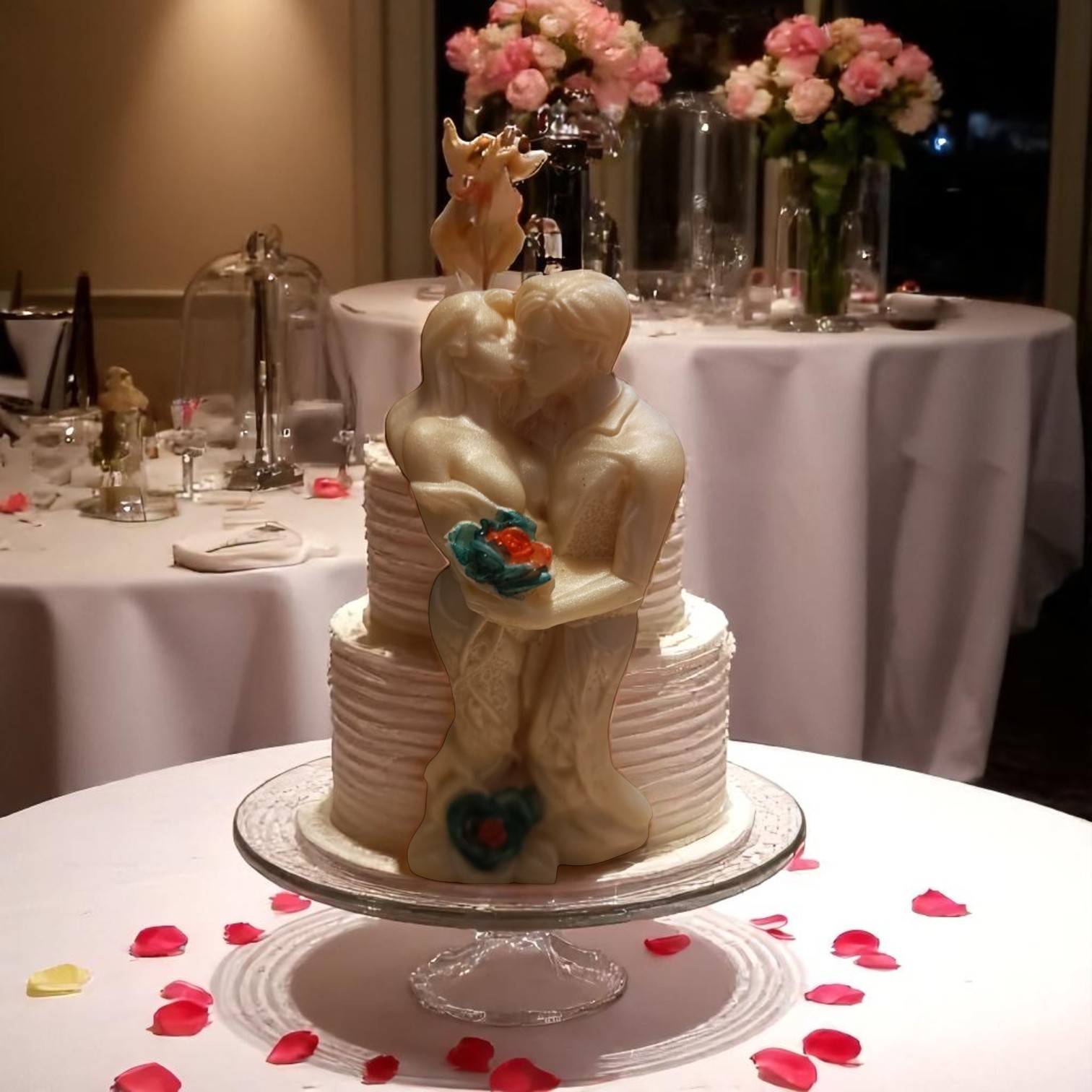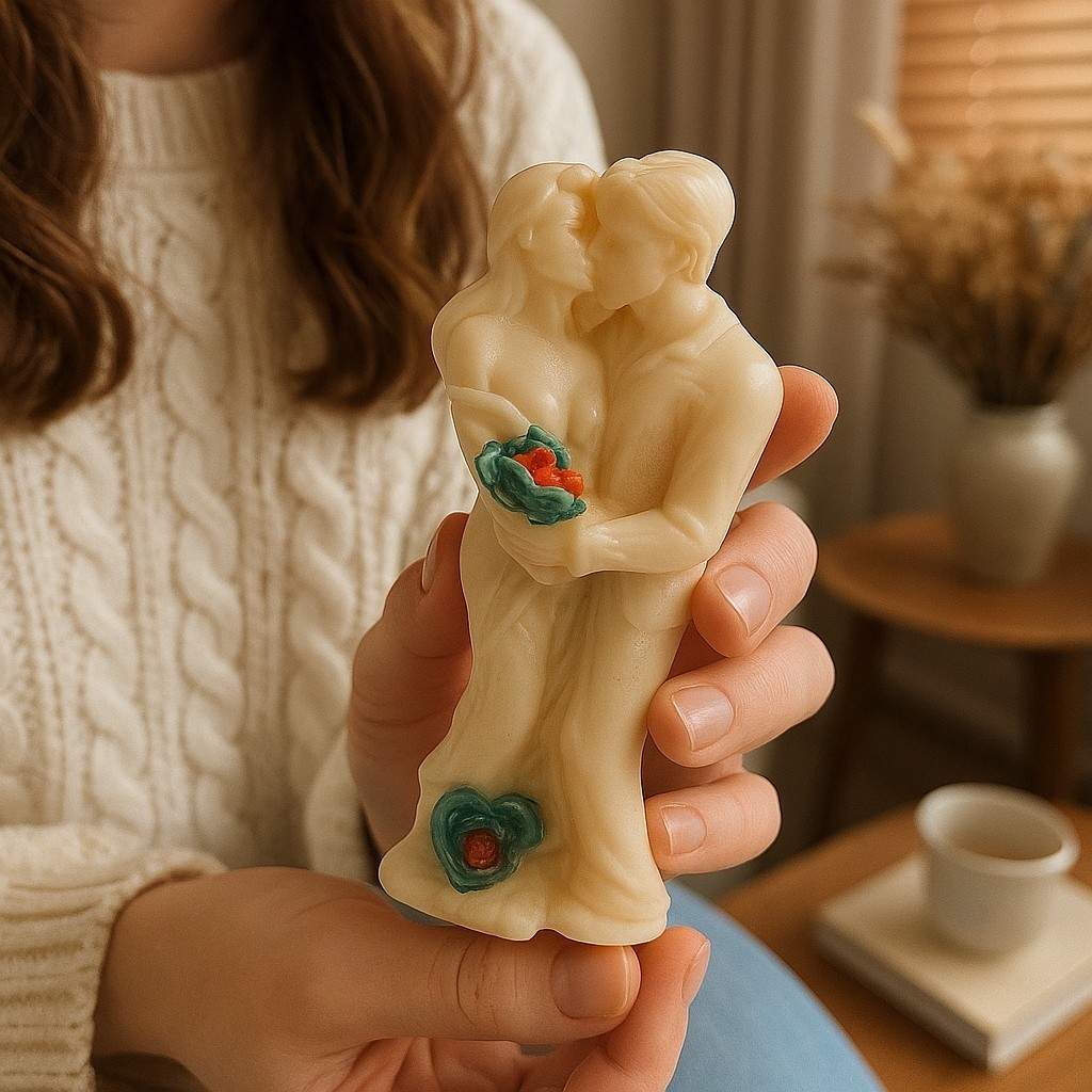 Pour une touche encore plus personnalisée, il est possible de transformer cette figurine en bougie, selon le souhait du client. Imaginez une bougie de cette adorable scène d’amour, qui pourra être allumée lors de la cérémonie ou conservée comme un souvenir précieux après le grand jour.
