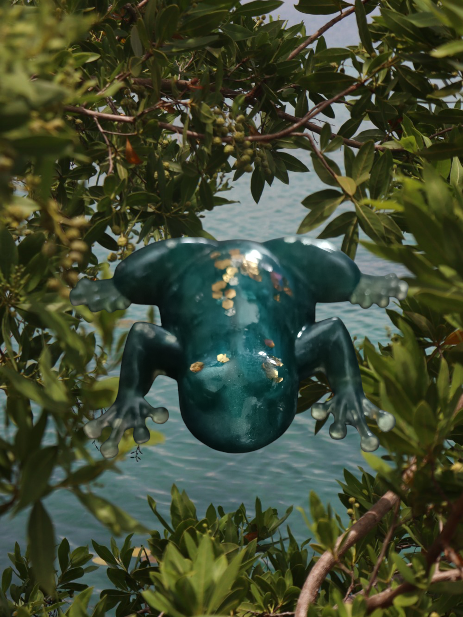 Cette grenouille en résine époxy est une pièce de collection unique, mêlant réalisme et fantaisie. Sculptée avec finesse et coulée à la main, elle incarne l’élégance et la délicatesse de la nature dans un format artistique et durable. Sa finition lisse et brillante, typique de l’époxy, met en valeur chaque détail de sa morphologie.