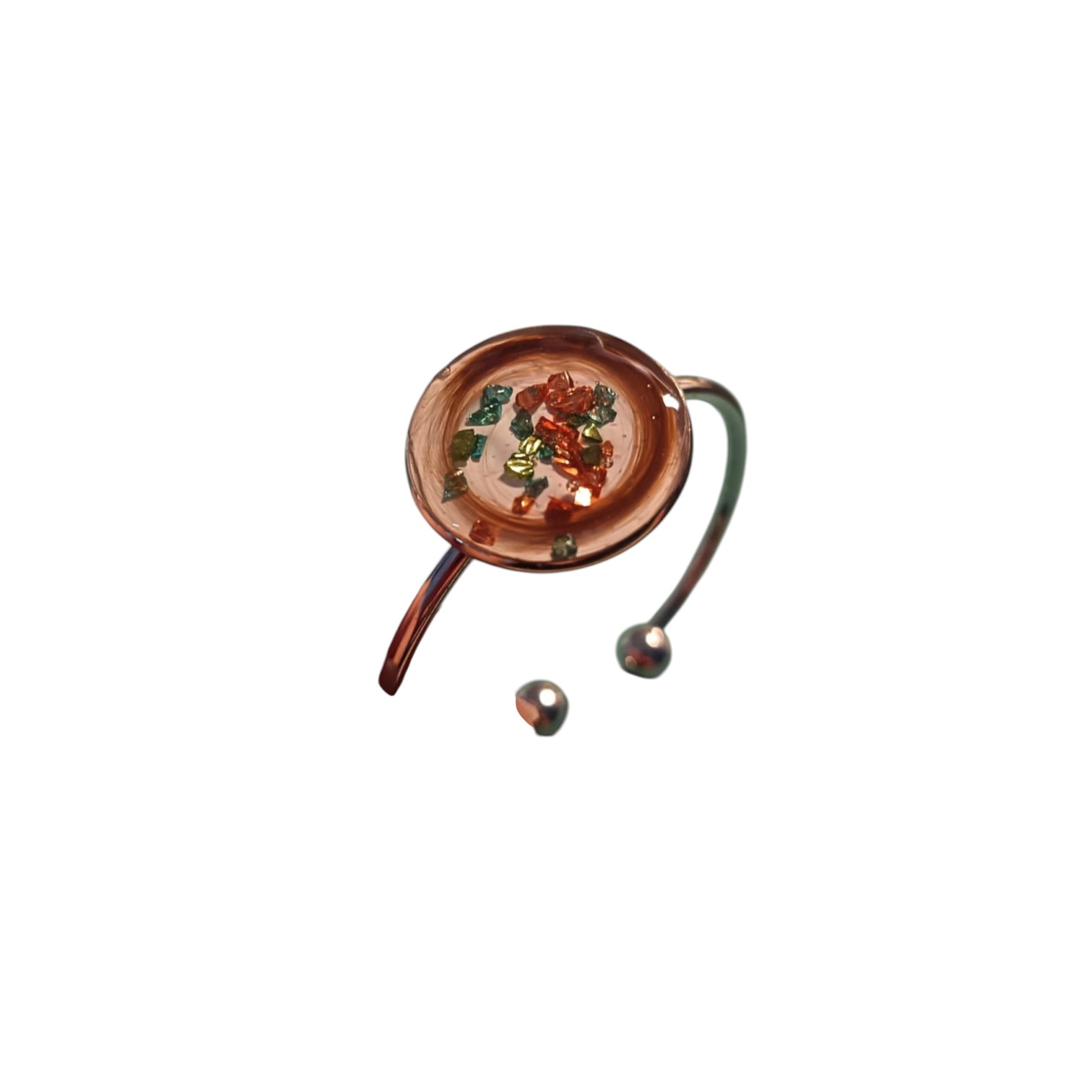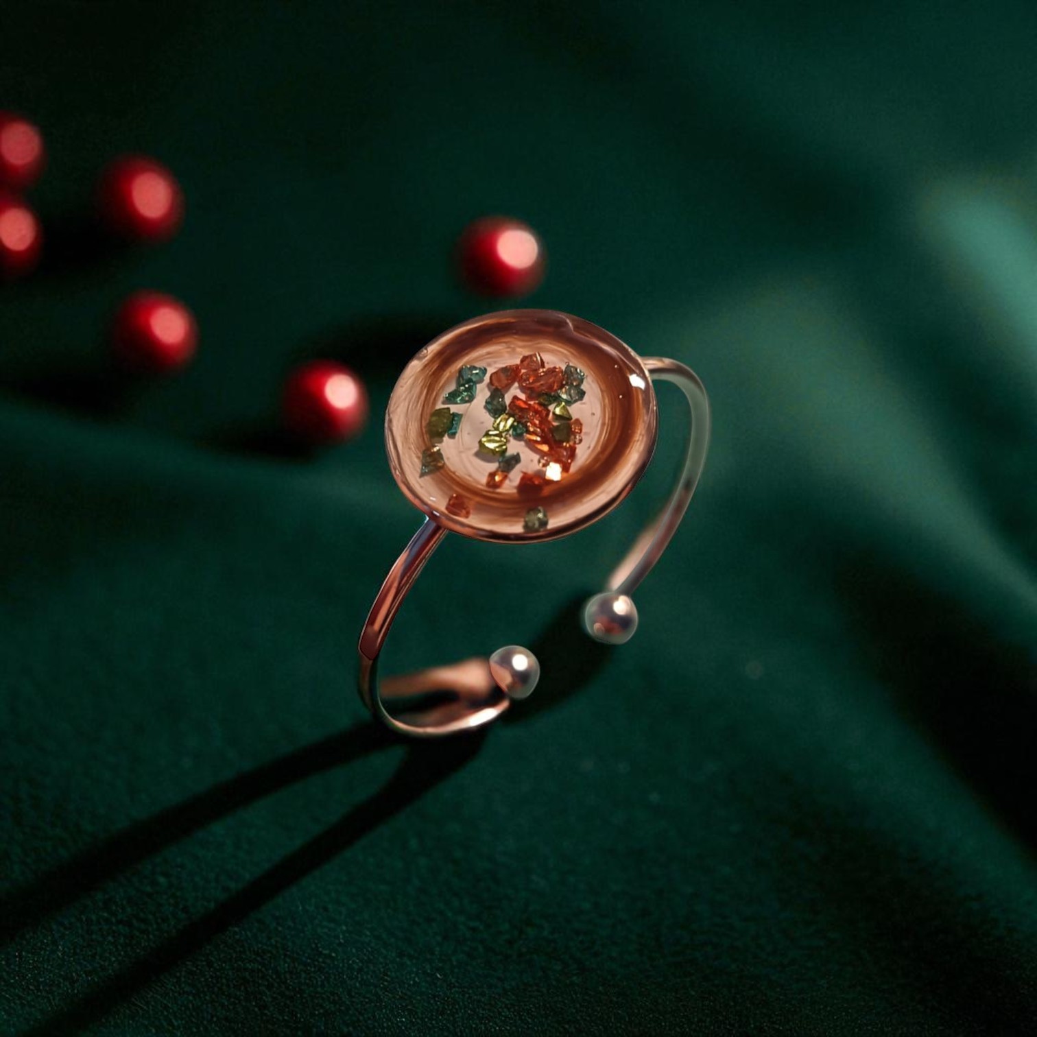 - Finition : L’ensemble est recouvert de résine époxy transparente, créant une protection durable tout en offrant un effet visuel captivant. La résine accentue les détails à l’intérieur et donne au bracelet un aspect brillant et poli, le rendant résistant aux éraflures.