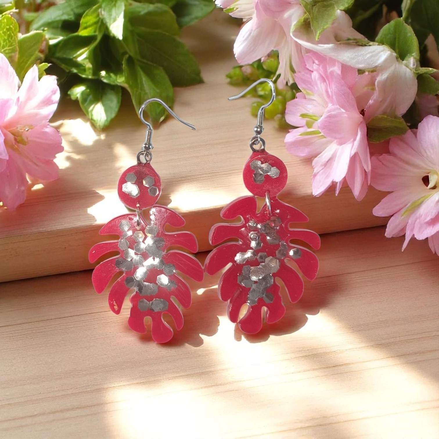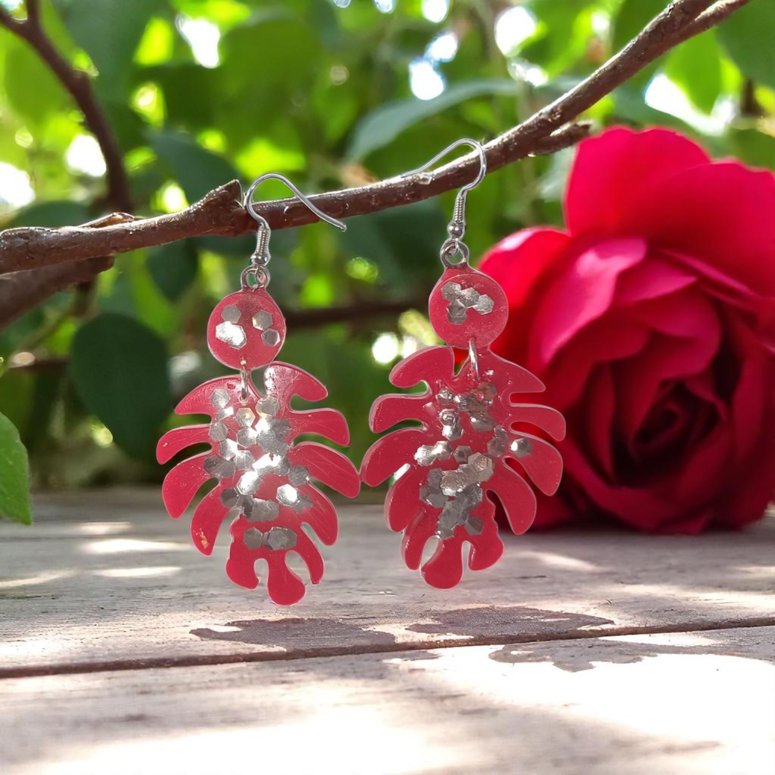 Ces boucles d’oreilles en forme de feuille incarnent à merveille l’élégance estivale. Conçues en résine époxy de haute qualité, elles offrent une finition lisse et brillante qui capte la lumière à chaque mouvement. Leur couleur rouge vif évoque la chaleur et la vitalité de l’été, tandis que les paillettes argentées intégrées apportent une touche de scintillement subtil, parfait pour illuminer votre visage lors des journées ensoleillées.