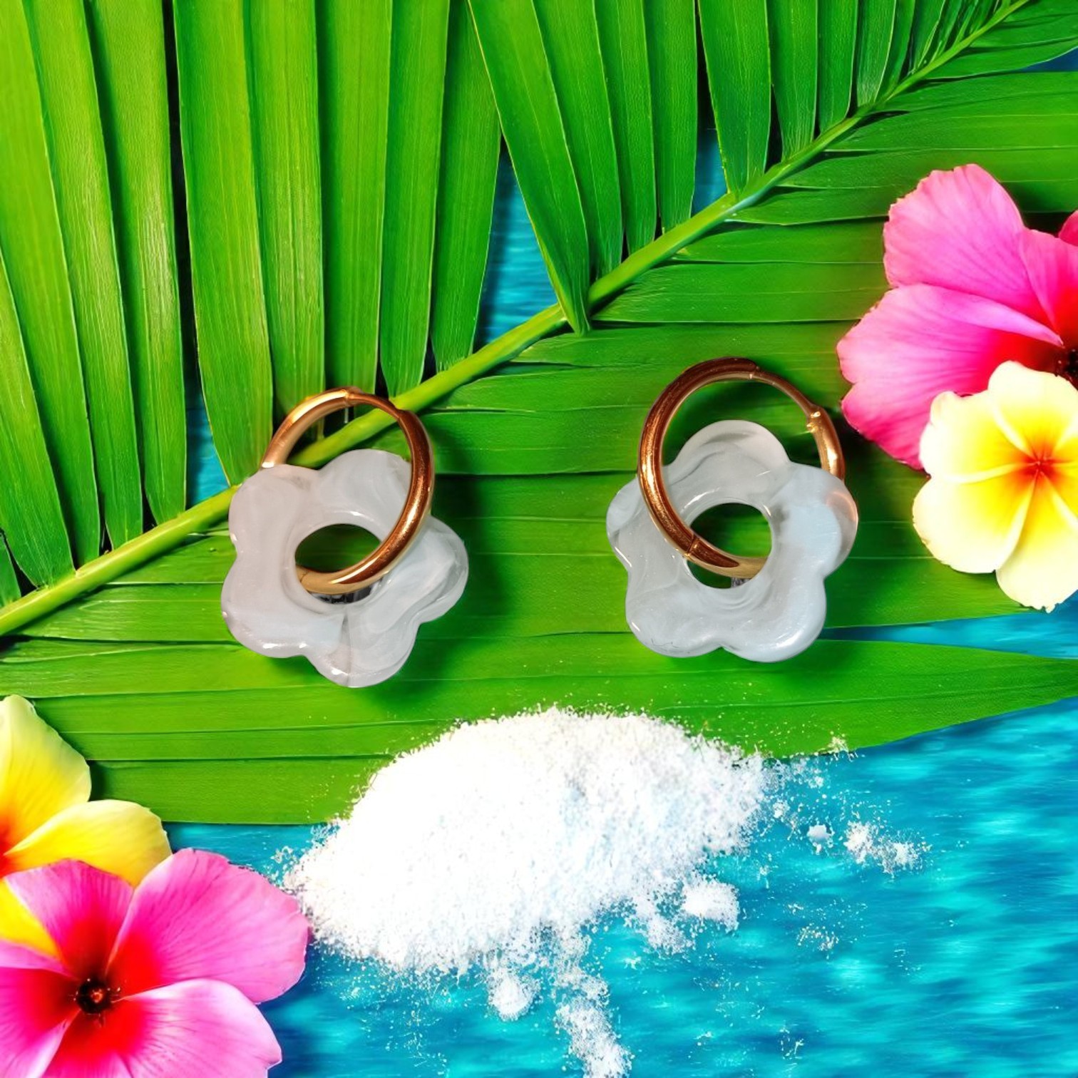 Matériaux et finition : Fabriquées en résine époxy de haute qualité, ces boucles d’oreilles offrent une surface lisse, résistante et brillante.