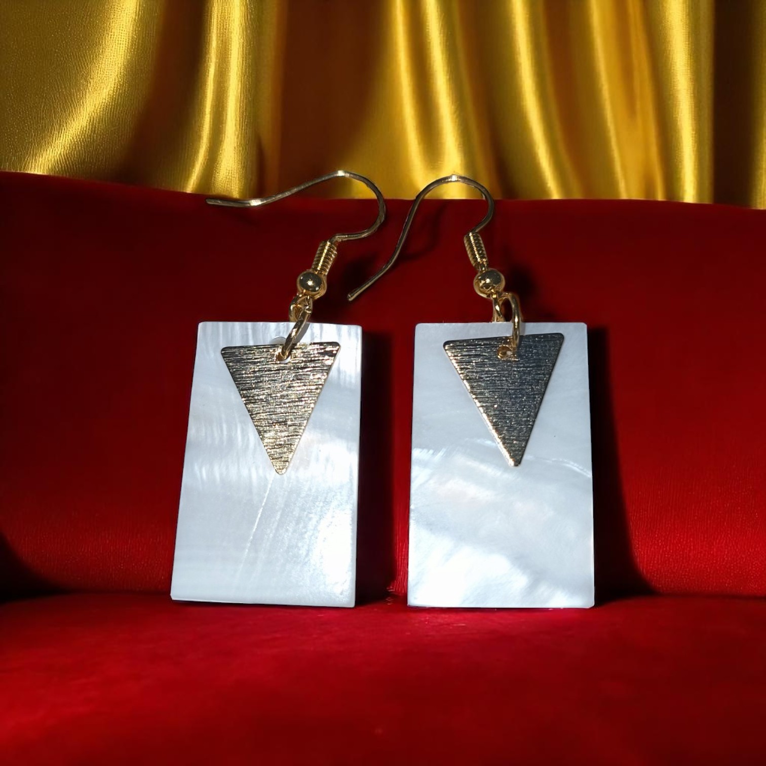 Les boucles d’oreilles sont équipées d’un fermoir en métal doré anti-allergique, assurant un port confortable et sécurisé, même pour les peaux sensibles. La combinaison de la résine époxy blanche et du triangle doré confère une allure à la fois minimaliste et chic, idéale pour une utilisation quotidienne ou pour compléter une tenue élégante.