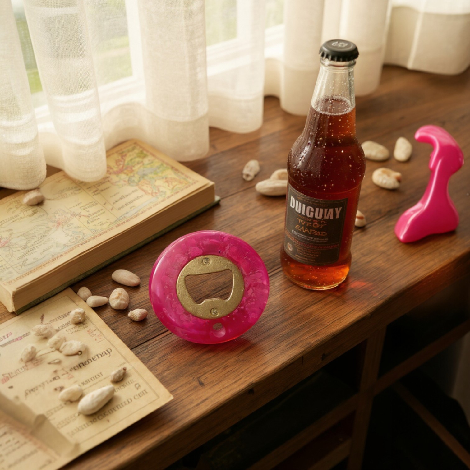 Matériau de Qualité : Fabriqué en résine époxy durable, ce décapsuleur allie robustesse et esthétisme. Il est résistant aux chocs et facile à nettoyer, garantissant une longévité optimale.