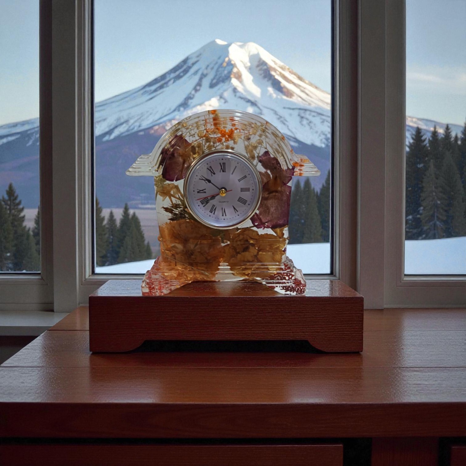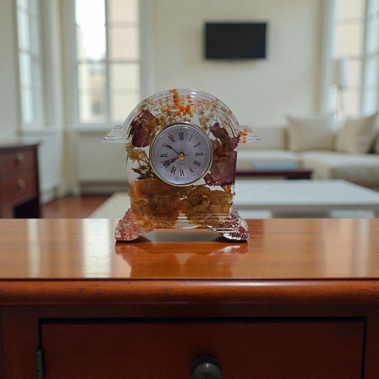 Avec son association élégante de fleurs séchées et de design traditionnel, cette horloge en résine époxy est un ajout saisissant et fonctionnel à tout intérieur, alliant esthétique et fonctionnalité intemporelle.