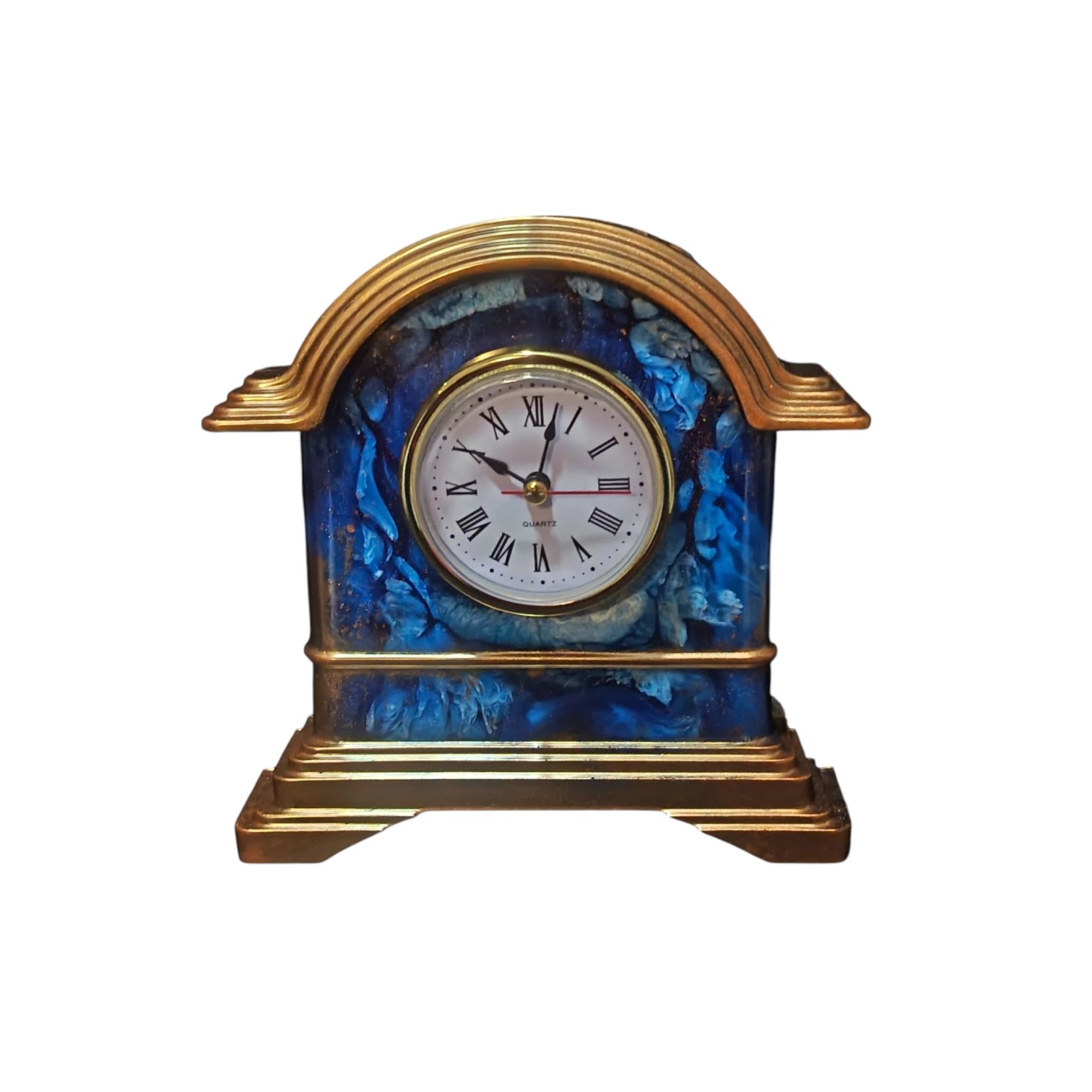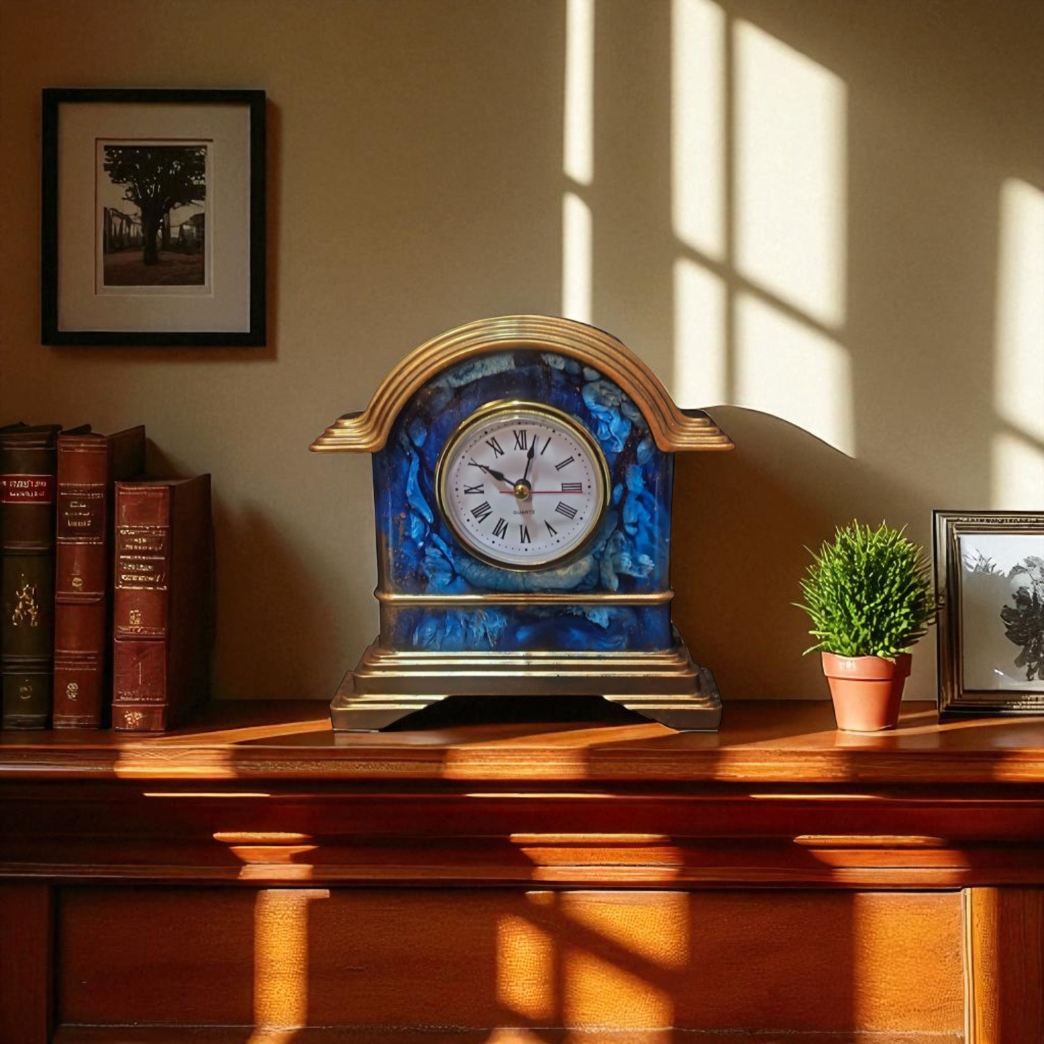 Découvrez cette magnifique pendule de style ancien, un véritable bijou pour votre intérieur. Avec son contour doré éclatant, elle apporte une touche de luxe et de sophistication à n’importe quel meuble. La combinaison de bleu marin profond et de délicates touches de blanc crée un contraste harmonieux, évoquant à la fois la sérénité et l’élégance.