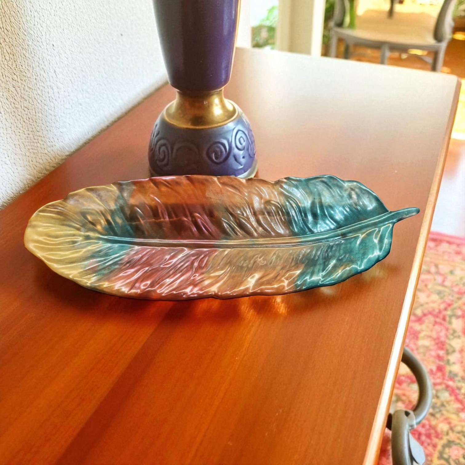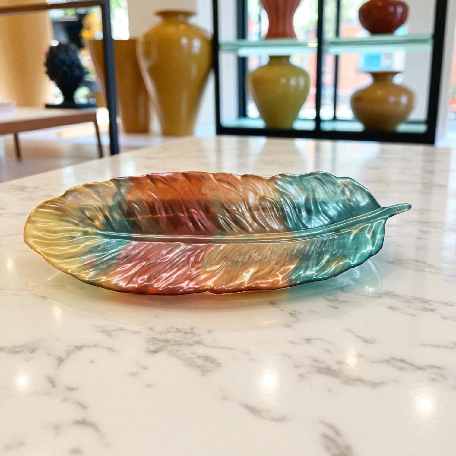 Idéale comme vide-poche, cette feuille apporte une sophistication instantanée à votre entrée tout en étant pratique. Elle est parfaite pour déposer vos clés, monnaie etc ….