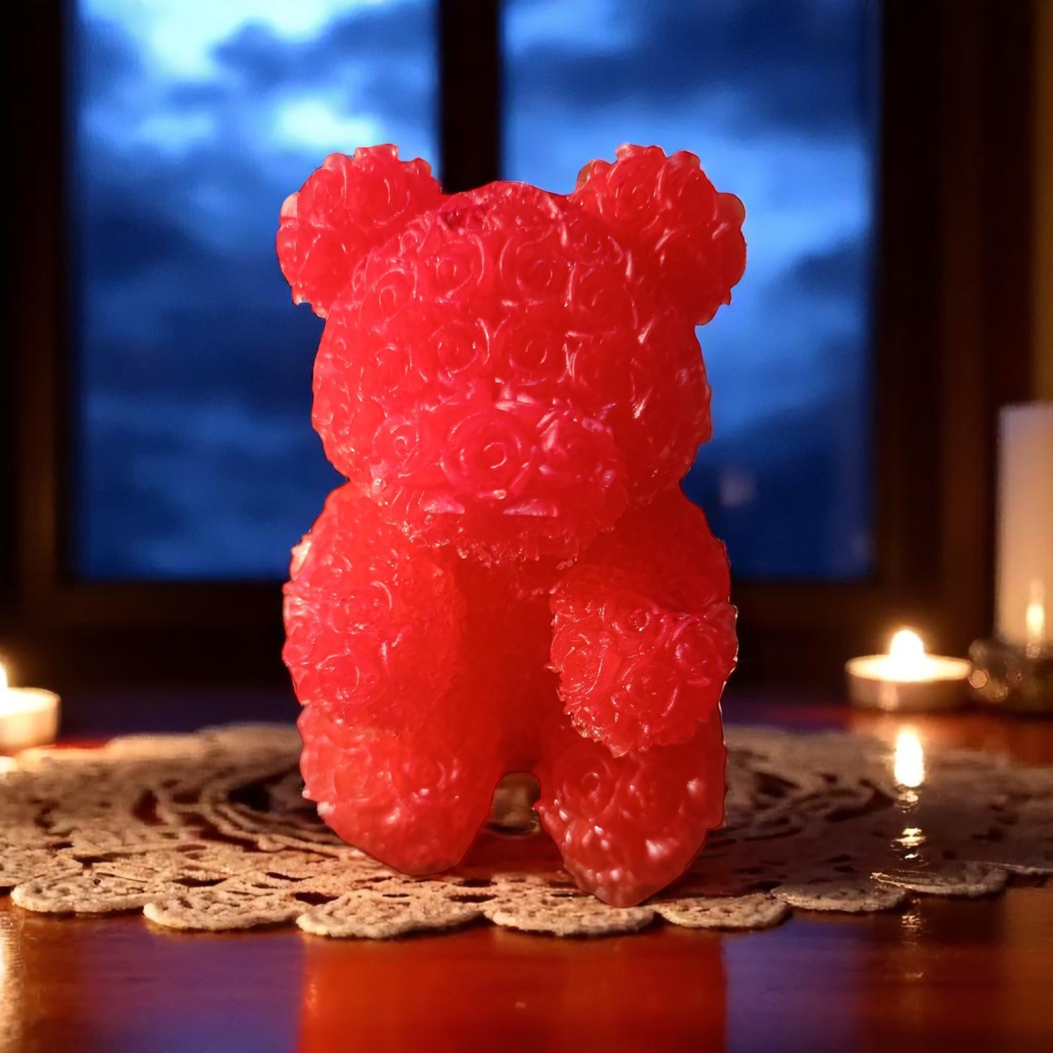 Ce charmant ourson en résine époxy est une pièce délicate et pleine de douceur, parfaite pour apporter une touche de charme à votre décoration. Sa forme compacte et mignonne évoque la tendresse et l’affection. L’originalité de cet ourson réside dans ses détails : il est entièrement orné de multiples petites roses rouges, soigneusement incrustées ou peintes à la main, qui lui donnent un aspect floral et romantique.
