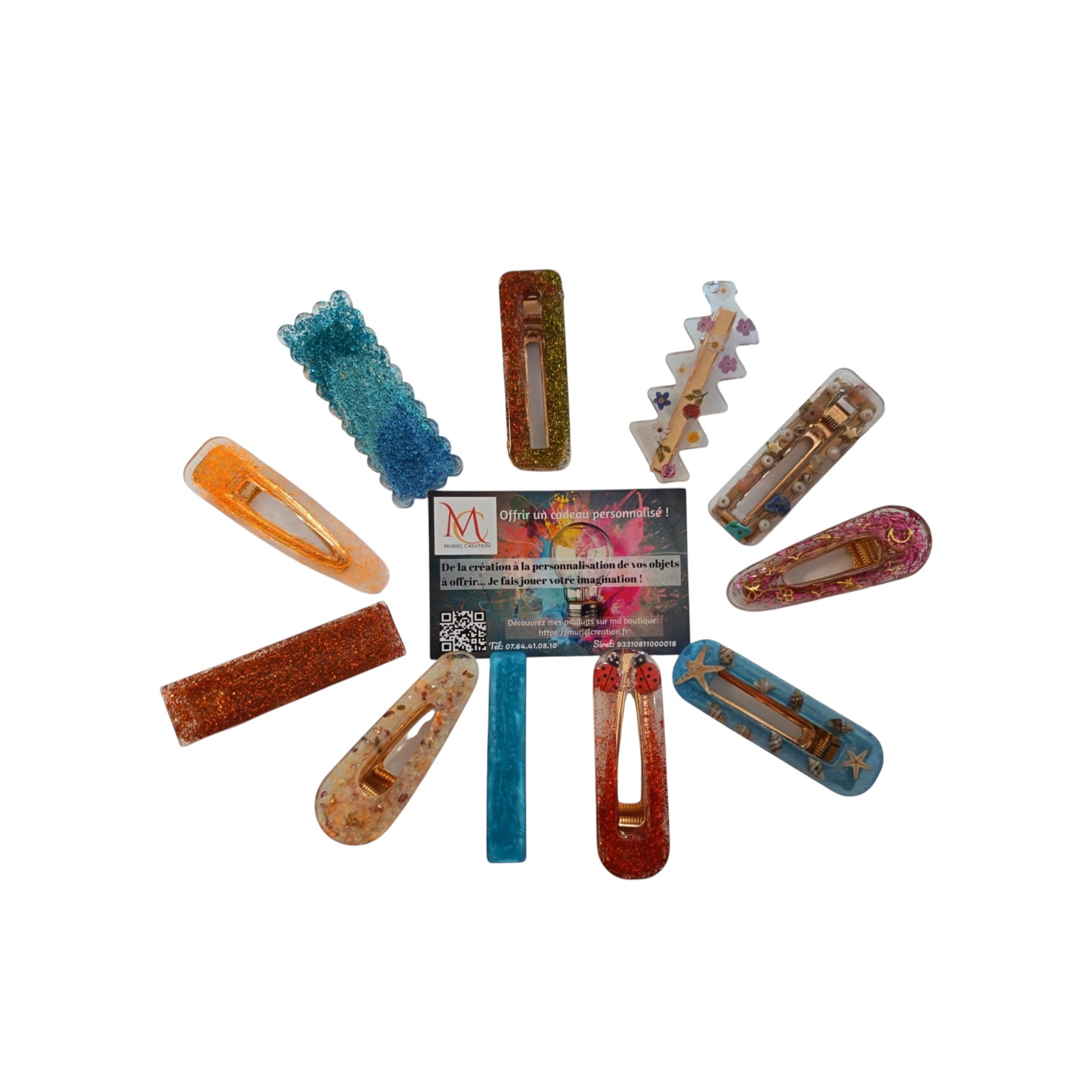 Chaque barrette et pince est réalisée avec une attention méticuleuse, garantissant une qualité exceptionnelle et une durabilité. Que ce soit pour un événement spécial ou pour revitaliser votre quotidien, nos barrettes en résine époxy sont le choix parfait pour sublimer votre coiffure et apporter une belle touche de charme !